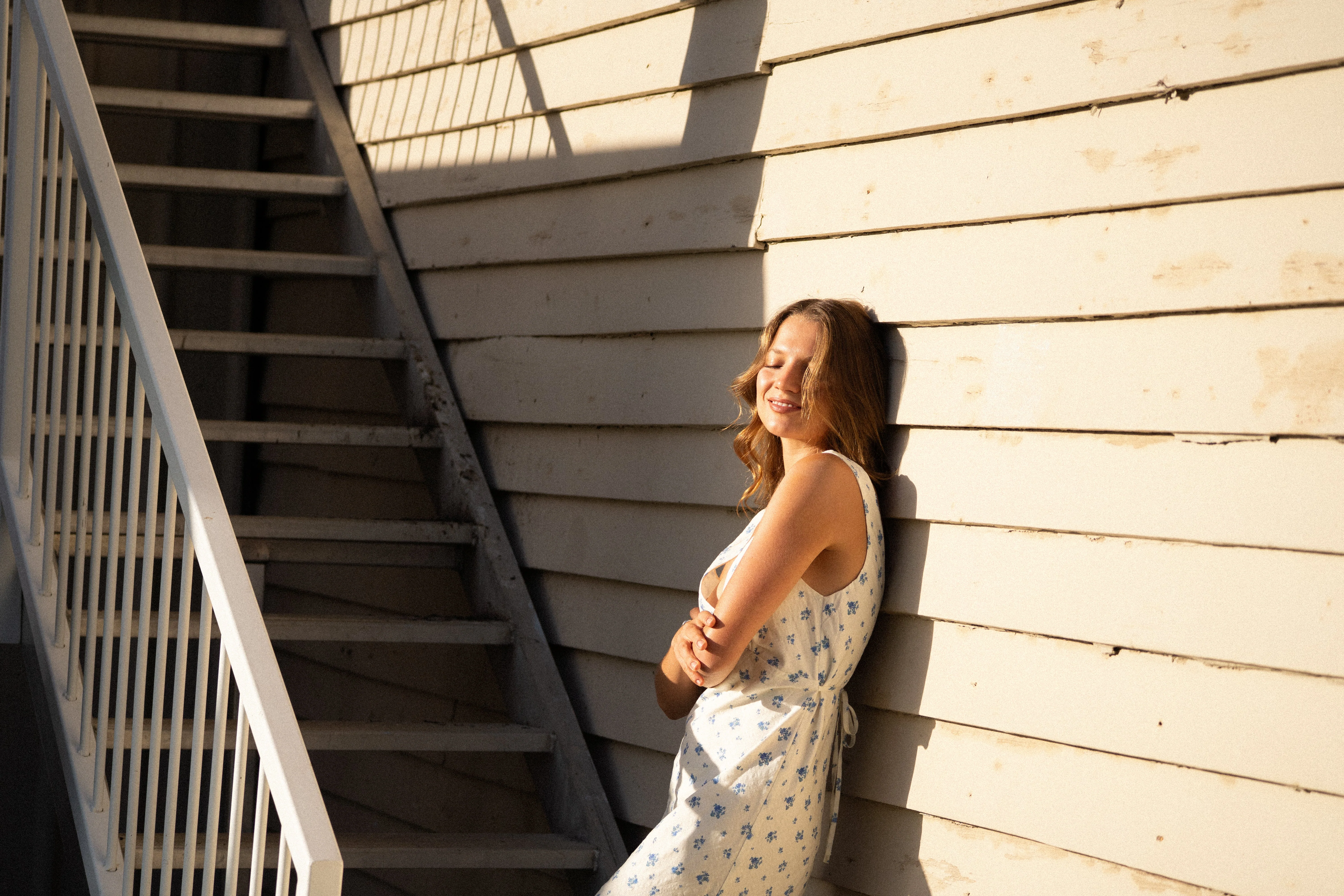 The Dahlia Bias Cut Dress in Sky is a midi-length style cut from lightweight floral fabric. Designed with a low V-neckline, tie-back detail, and subtle drape, it’s an elegant sunset-ready piece.